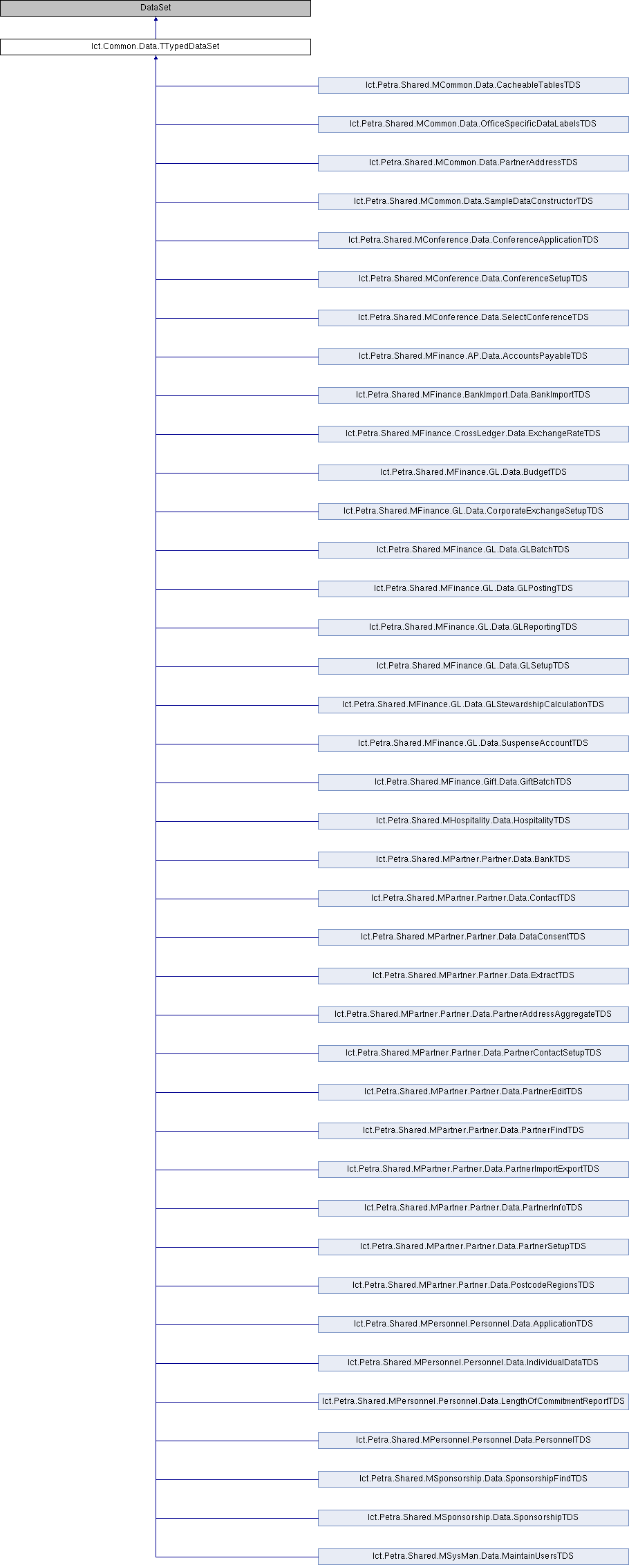 Implemented in Ict.Petra.Shared.MCommon.Data.OfficeSpecificDataLabelsTDS, Ict.Petra.Shared.MCommon.Data.CacheableTablesTDS, Ict.Petra.Shared.MCommon.Data.SampleDataConstructorTDS, Ict.Petra.Shared.MCommon.Data.PartnerAddressTDS, Ict.Petra.Shared.MConference.Data.SelectConferenceTDS, Ict.Petra.Shared.MConference.Data.ConferenceSetupTDS, Ict.Petra.Shared.MConference.Data.ConferenceApplicationTDS, Ict.Petra.Shared.MFinance.AP.Data.AccountsPayableTDS, Ict.Petra.Shared.MFinance.BankImport.Data.BankImportTDS, Ict.Petra.Shared.MFinance.CrossLedger.Data.ExchangeRateTDS, Ict.Petra.Shared.MFinance.Gift.Data.GiftBatchTDS, Ict.Petra.Shared.MFinance.GL.Data.GLBatchTDS, Ict.Petra.Shared.MFinance.GL.Data.GLPostingTDS, Ict.Petra.Shared.MFinance.GL.Data.GLReportingTDS, Ict.Petra.Shared.MFinance.GL.Data.GLSetupTDS, Ict.Petra.Shared.MFinance.GL.Data.GLStewardshipCalculationTDS, Ict.Petra.Shared.MFinance.GL.Data.BudgetTDS, Ict.Petra.Shared.MFinance.GL.Data.SuspenseAccountTDS, Ict.Petra.Shared.MFinance.GL.Data.CorporateExchangeSetupTDS, Ict.Petra.Shared.MHospitality.Data.HospitalityTDS, Ict.Petra.Shared.MPartner.Partner.Data.PartnerEditTDS, Ict.Petra.Shared.MPartner.Partner.Data.PartnerAddressAggregateTDS, Ict.Petra.Shared.MPartner.Partner.Data.PartnerInfoTDS, Ict.Petra.Shared.MPartner.Partner.Data.PartnerFindTDS, Ict.Petra.Shared.MPartner.Partner.Data.PartnerSetupTDS, Ict.Petra.Shared.MPartner.Partner.Data.PartnerImportExportTDS, Ict.Petra.Shared.MPartner.Partner.Data.ExtractTDS, Ict.Petra.Shared.MPartner.Partner.Data.ContactTDS, Ict.Petra.Shared.MPartner.Partner.Data.PostcodeRegionsTDS, Ict.Petra.Shared.MPartner.Partner.Data.BankTDS, Ict.Petra.Shared.MPartner.Partner.Data.PartnerContactSetupTDS, Ict.Petra.Shared.MPartner.Partner.Data.DataConsentTDS, Ict.Petra.Shared.MPersonnel.Personnel.Data.PersonnelTDS, Ict.Petra.Shared.MPersonnel.Personnel.Data.IndividualDataTDS, Ict.Petra.Shared.MPersonnel.Personnel.Data.ApplicationTDS, Ict.Petra.Shared.MPersonnel.Personnel.Data.LengthOfCommitmentReportTDS, Ict.Petra.Shared.MSponsorship.Data.SponsorshipTDS, Ict.Petra.Shared.MSponsorship.Data.SponsorshipFindTDS, and Ict.Petra.Shared.MSysMan.Data.MaintainUsersTDS.